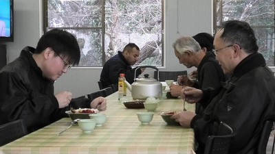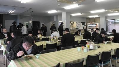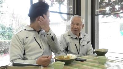ベテランと若手が和気あいあいとした雰囲気で昼食をとっている