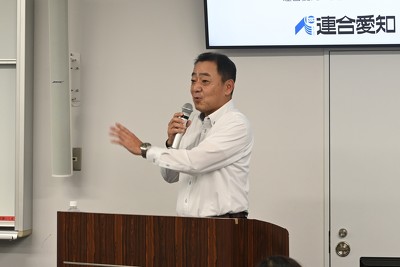 最初に登壇した可知会長は、冒頭、講座の目的について説明。そして、労働組合や連合・連合愛知の活動内容を紹介。スローガン『まもる・つなぐ・創り出す』のもと、労働相談をはじめ、ジェンダー平等推進、春季生活闘争、最低賃金などの取り組みについて語りました。