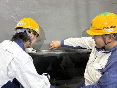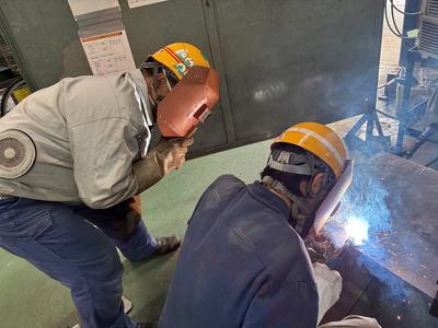 新美さんは入社時、電気関係の保全などに関する業務を希望していたものの、入社後の研修・訓練の時に適性を見出され溶接工に配属。当初は、数千度の熱を扱う過酷で危険な仕事に抵抗感があったそうです。「でも先輩の指導を受け、実際に作業の経験を積んでいくと、自分の腕一つで出来の良し悪しが仕上がりに現れる溶接工の仕事に、モノづくりの醍醐味を感じ始めました。」