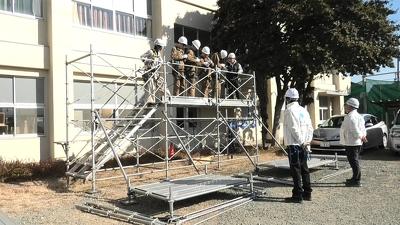 足場の組み立てに取り組む生徒(とび土工)