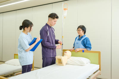 授業では、ベッドから車椅子への移乗一つとっても、想像以上に気をつける点やコツがあることを実感しました。実習では、授業で学んだ基本的な技術を、現場に適したバージョンにブラッシュアップできました。授業と実習の相乗効果で技術を身につけられたと思います。また、高齢者の方とのコミュニケーションにやりがいを見出せました。