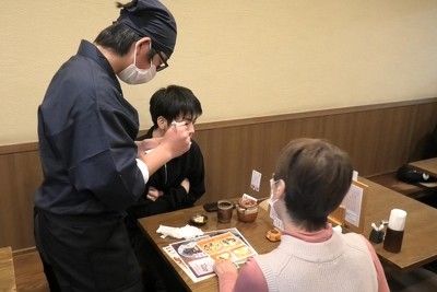 スタッフからお客さんへの接し方を学んだ二人は、お客さんが来店するとお茶を運んだり、注文を取りに行ったりと、積極的に取り組んでいました。