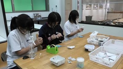 「集中を切らしたら、濡らした和紙が破れてしまう。」と、一言もしゃべらずに作業する生徒たち。60個ほど作り終えると、「できたー!」とほっとした表情を見せました。