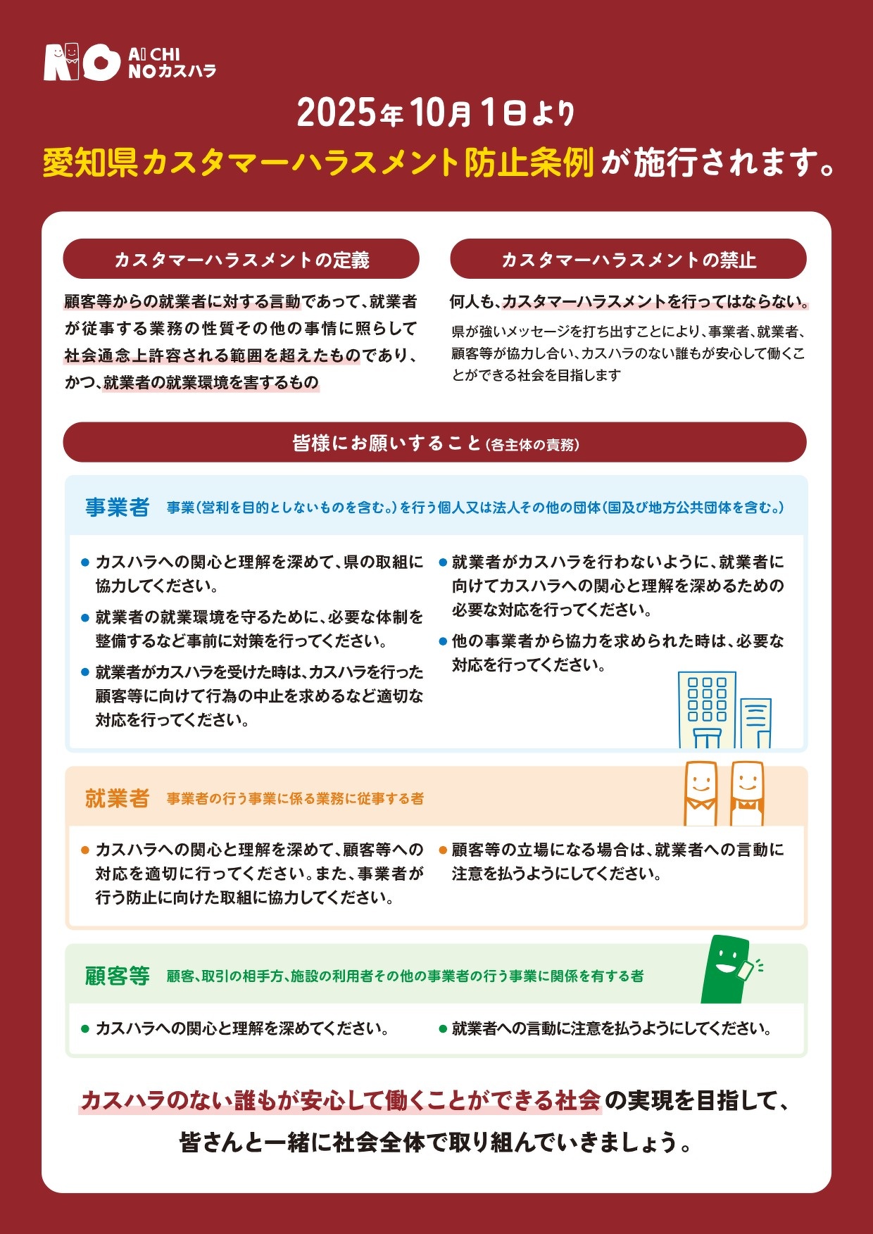 愛知県カスタマーハラスメント防止条例が施行されました 愛知県