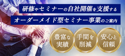 コミュニケーション力やプレゼンテーション力向上のためのキャリアアップセミナーや、人事・経理等担当者に必須のビジネス実務スキルアップセミナーなど、幅広いテーマの講座を開催しています。